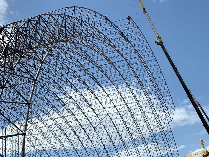 (2)网架加工前应对现场尺寸进行复测,确认无误后方可进行加工、安装;网架制作、运输、安装应遵守《空间网格结构技术规程》JGJ7-2010、《钢网架延吉螺栓球节点》JG/T 10-2009、《钢网架延吉螺栓球节点用高强度螺栓》 GB/T 16939-2016、《延吉钢结构延吉工程延吉施工规范》 GB50755-2012、《延吉钢结构延吉工程施工质量验收标准》 GB50205-2020。